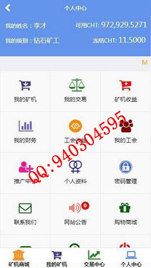 钻石矿工:直推100 团队总人数:5000 公会算力:10000G(或1000台超级矿机) 交易手续费:5% 可拥有算力:300G 赠送矿机:超级矿机*5 自动开启工会管理功能