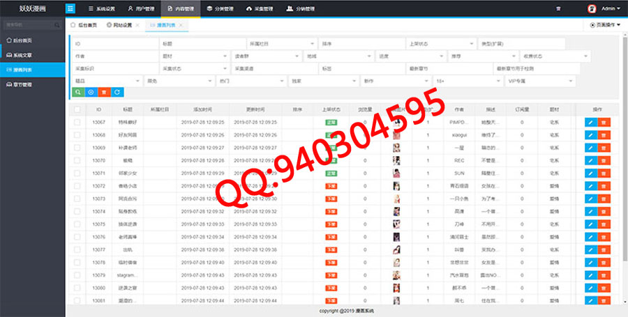 本套程序只含测试数据,不包任何设置,系统内置带小说,漫画采集规则