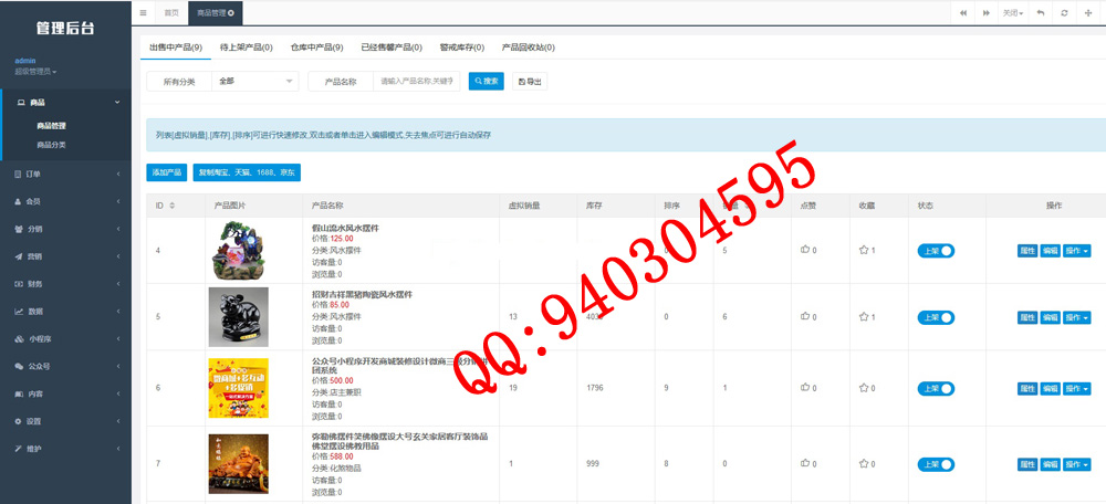 虚拟销量/物流追踪/带采集功能/客服系统/在线支付