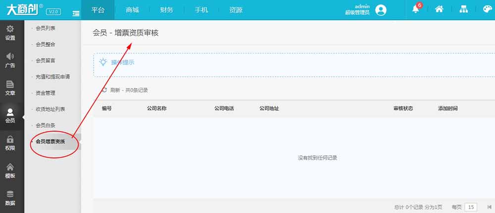 5、新增会员增值发票功能
