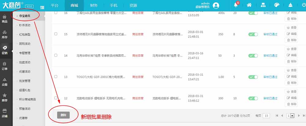 1、新增后台夺宝奇兵批量删除功能