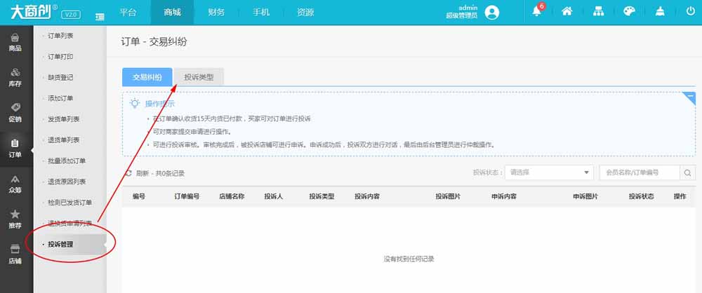 2、新增订单交易纠纷功能
