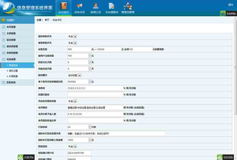 1、手机号码、身份证号码与银行卡实名账户注册,一人只能注册一个账户,杜绝大量空账户。 2、初始投资1000-60000元,推荐一人加盟增加5000额度,累计6万封顶每单,每月只允许提交6次。 3、排队之日起开始计息,等待系统匹配成功后48小时内打款给对方打款。 4、CCC增加30%封顶,冻结期15天。 5、经理责任制,会员48小时结束不打款,账户冻结,该单自动匹配上级经理代打款,收益归上级经理,上级经理不打款,扣除300补偿给收款人,系统重新匹配打款人继续完成打款。 6、打款后超过48小时收款人不确认操作,由双方经理人核实协助确认,经理人核实仍然有争议时,客服介入操作,并终生冻结恶意欺诈账户。 7、小单推大单,推荐奖及领导奖以小单额度为提款上限,余额暂冻结,延迟下月逐步释放,比如自己投资1万,奖金累计10万,当月提取上限为1万,直推达6人以上,且每人每月不低于1000援助,无此提现限制。