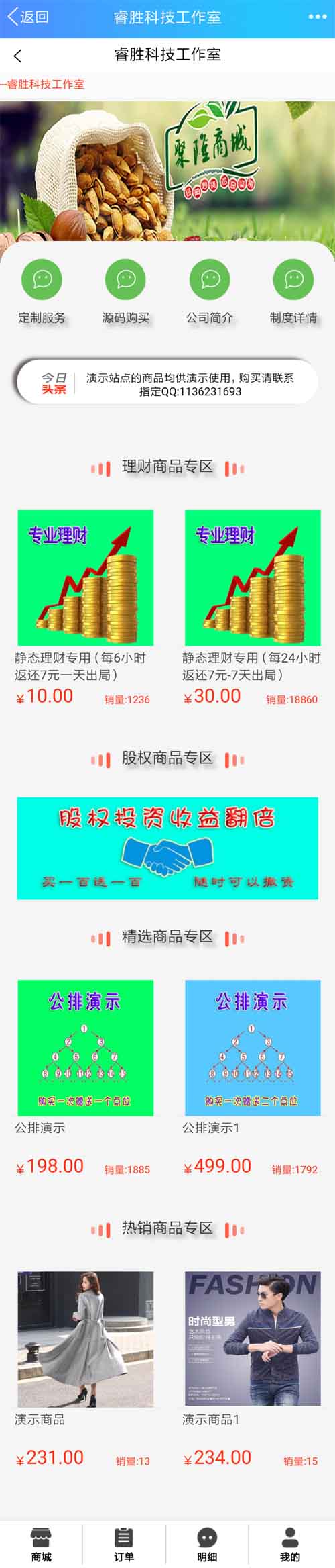 Thinkphp5最新开发的股权直销公排投资理财平台源码带虚拟币购物商城,价值2800元的理财分红收益、团队津贴直销公排系统,支持金额转账,我的钱包在线提交后台审核转账。原价3000元的这里优惠促销了。