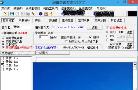 17.后期编辑功能,支持EXE截取、EXE合成、EXE转成LX、LX截取、LX合成、AVI合成、AVI截取、AVI转换压缩格式,EXE转成AVI等功能。