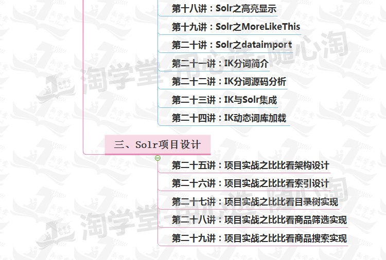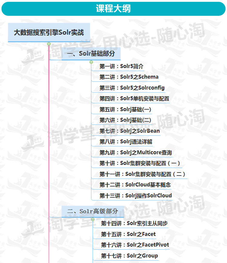 本教程从最基础的solr语法开始讲解,选择了最新最流行的开源搜索引擎服务框架solr5.3.1,利用 Tomcat8搭建了solr的集群服务;本教程可以帮助学员快速上手solr的开发和二次开发,包括在 hadoop集群的是利用,海量数据的索引和实时检索,通过了解、学习、安装、配置、集成等步骤引导学员如何将solr集成到项目中。