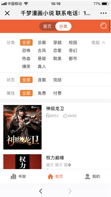 PHP开发的一款漫画小说听书分销系统,漫画、小说、听书三大核心功能,用户可以随意切换,满足用户多种需求,带无线裂变用户功能,不怕没有新用户没流量,程序可以对接微信支付。