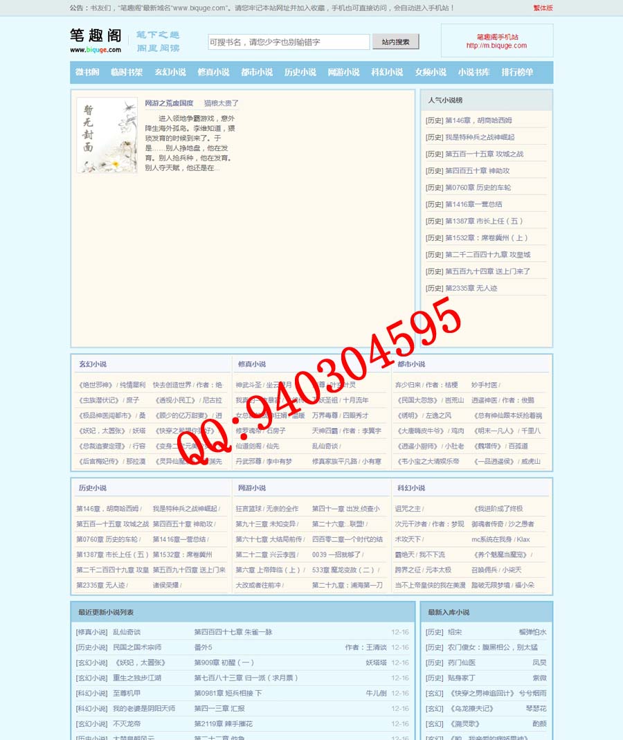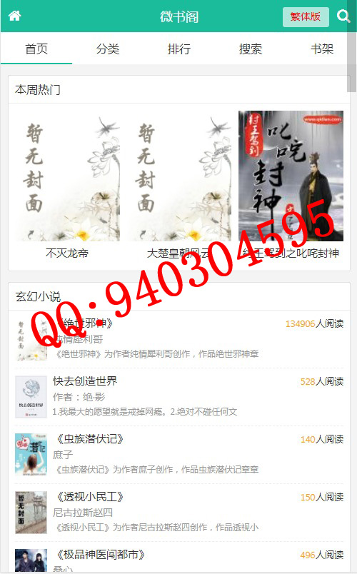 基于thinkPHP3.2开发的无弹窗小说网源码,是一款经典的小说阅读网源码,阅读小说时无弹窗推送,无弹窗书友最值得收藏的网络小说阅读网。有意向的朋友可以了解一下。