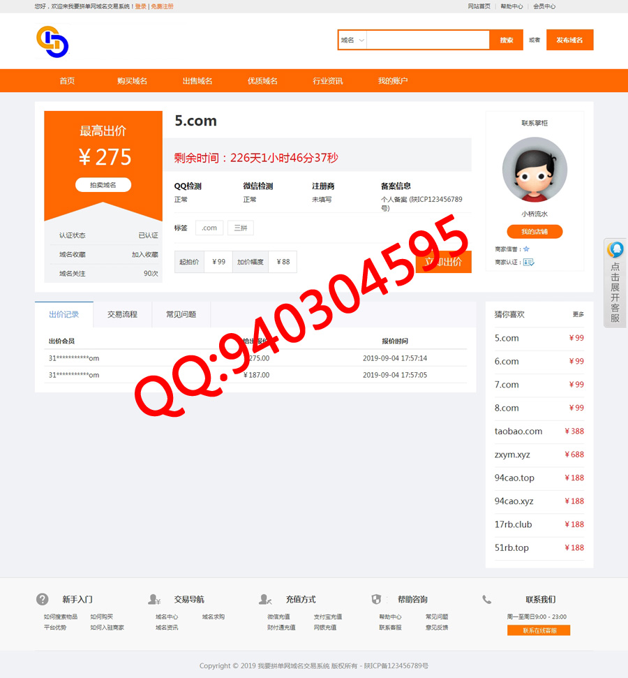 友价内核域名交易平台仿友价域名交易系统源码备案域名阿里云腾讯云百度云个人企业备案。