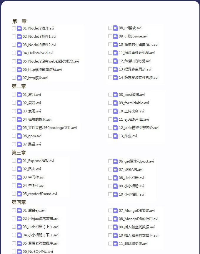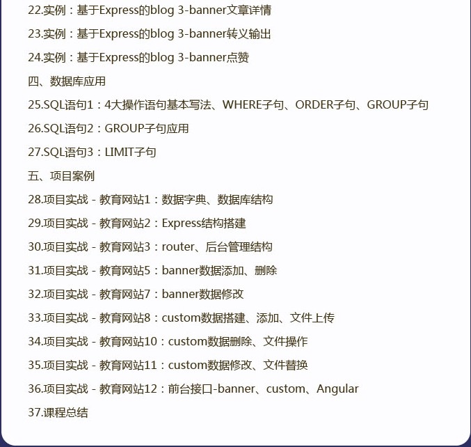 node.js后端框架Express自学视频教程入门到精通博客微信项目实战,node.js应用开发自学视频教程带项目实战+课件+源码,nodejs经典课程和就业课程+node实战博客项目+Node实战微信电影票务系统。