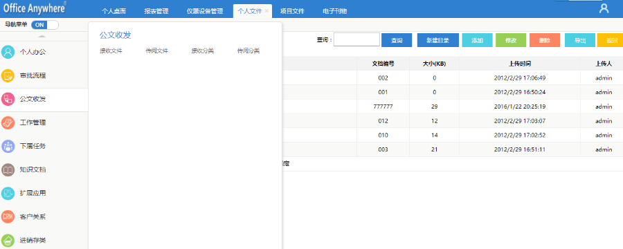 a、公文收发(接收公文,传阅文件,接收分类,传阅分类)