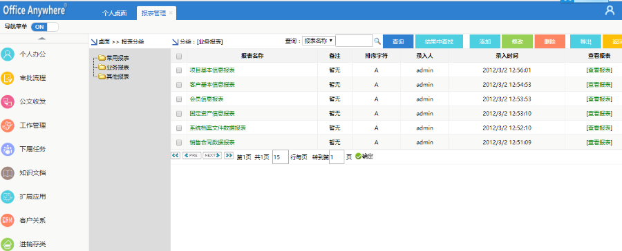 a、报表中心(报表分类,报表管理)