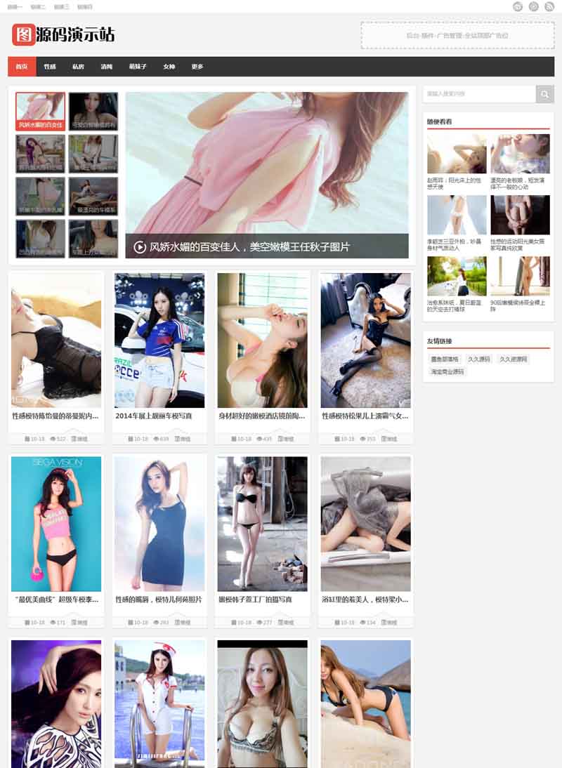 PHP妹纸图库网美女养眼门户站源码支持鼠标下拉滚动加载,HTML5瀑布流图片网站自适应整站源码,可后台自定义广告,通过流量收取广告费。