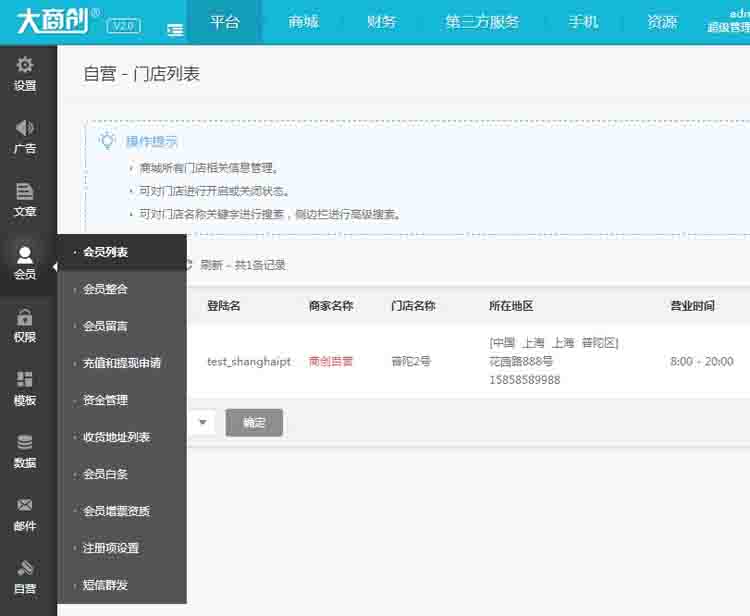 2、新增后台区分自营和店铺的信息(包括商品、订单,促销等)