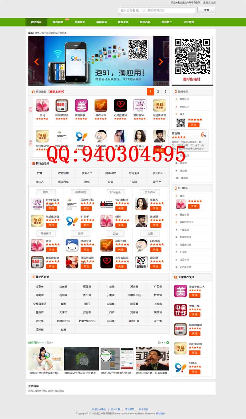 Thinkphp3.1绿色微信导航网站源码 PHP微信公众平台导航网站V5 微信分享平台源码。