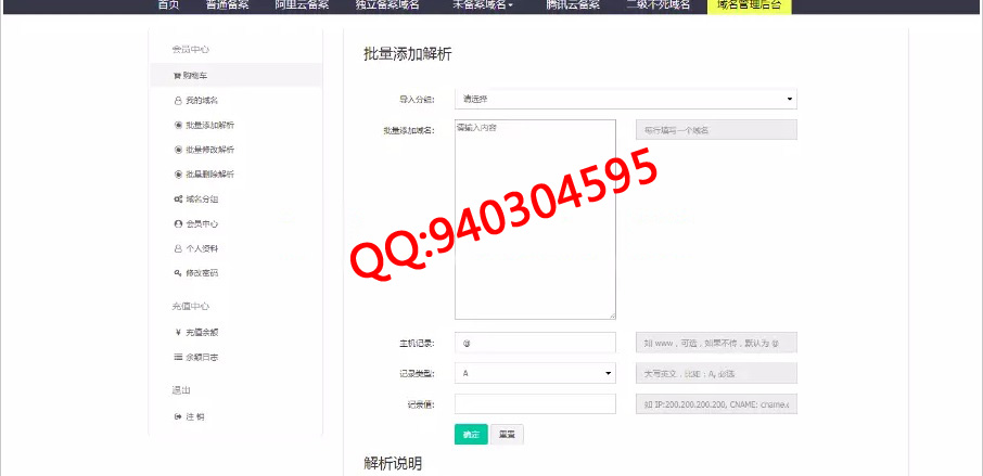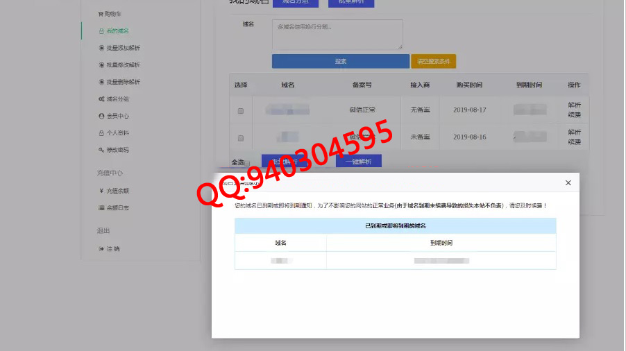 ThinkPHP开发的一款域名在线管理出售系统源码,自己网站后台批量添加域名。用户就能购买,自助解析。支持域名全网平台对接,能批量添加域名。用户自助解析,后台支付宝,微信收款 。