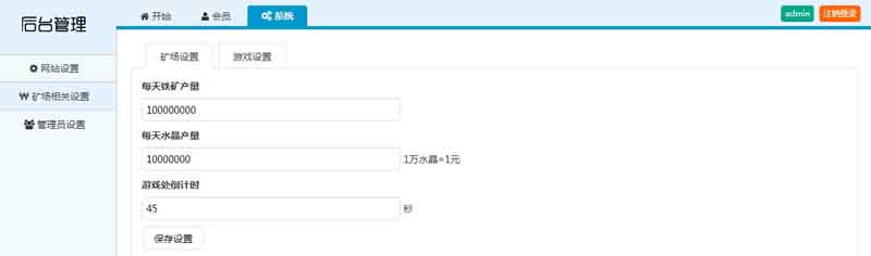 1、新注册会员即可开始 挖矿,矿场每天自动产铁矿,1万,水晶10万(后台可自由设置),1万水晶可提现1元,1万水晶=1元,后台可设置更多实物兑换物品。