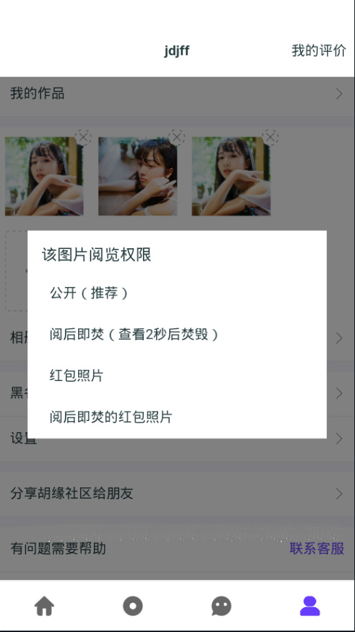 附近的人动态,相册权限(阅后即焚,红包照片,公开)