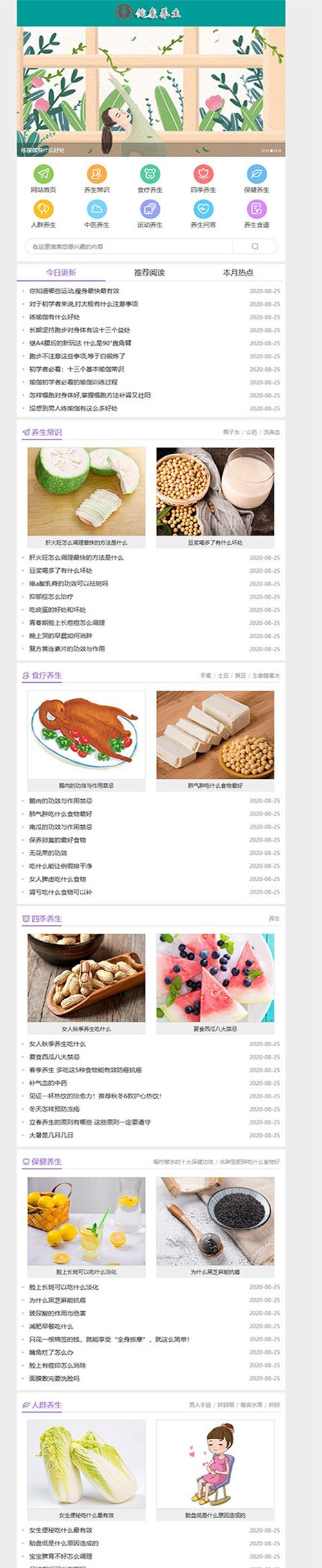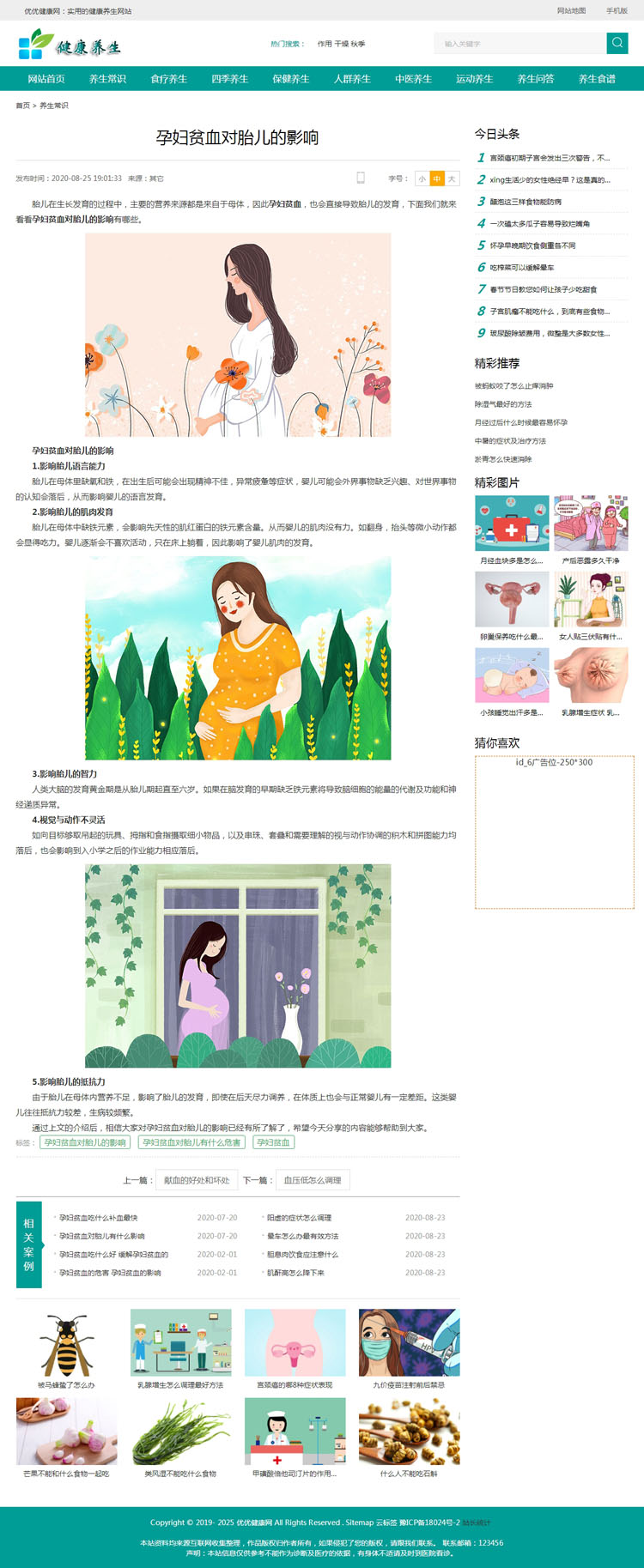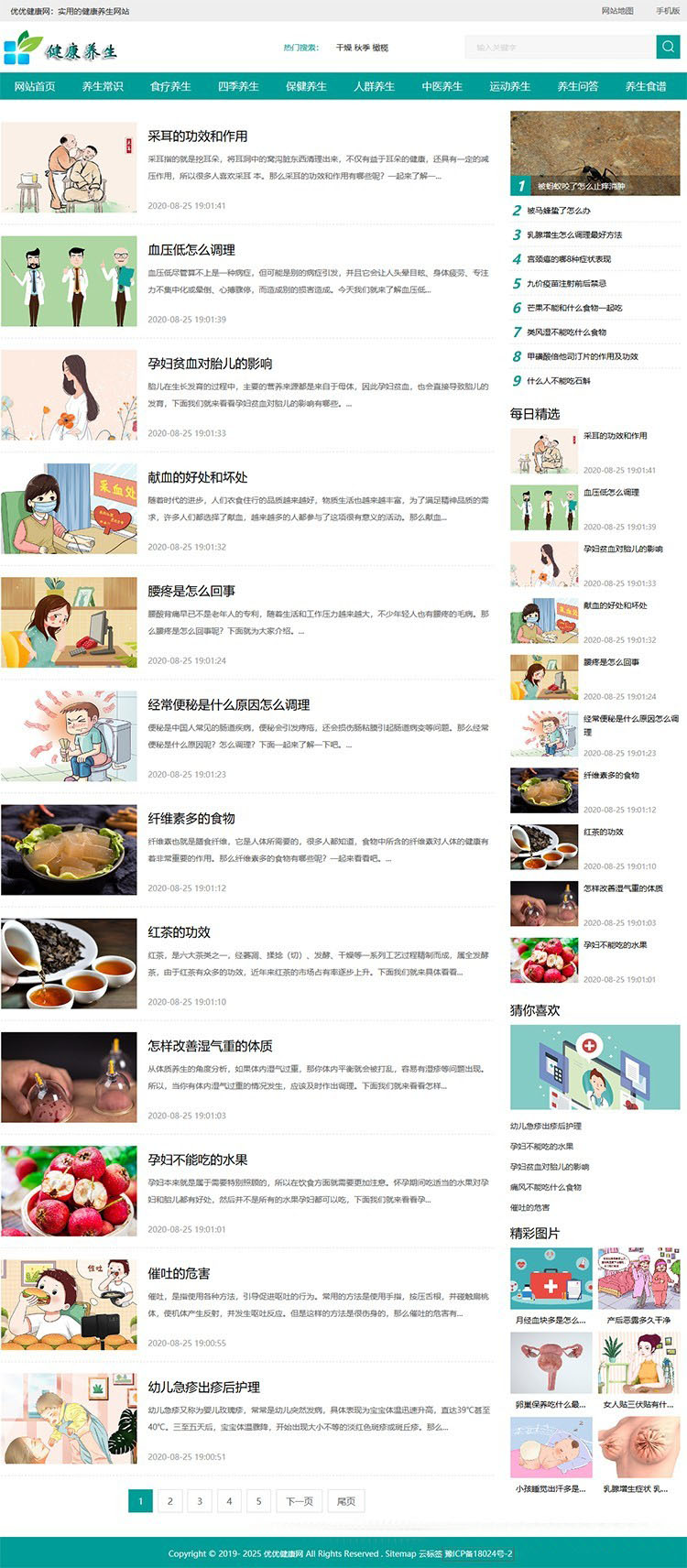帝国CMS《健康养生》模板,简介大气访问快,养生源码模板,健康模板,百度自动推送,站内关键字改成直接调用tag标签,这样就方便对站内优化已比较好,经测试还容易产生词库。