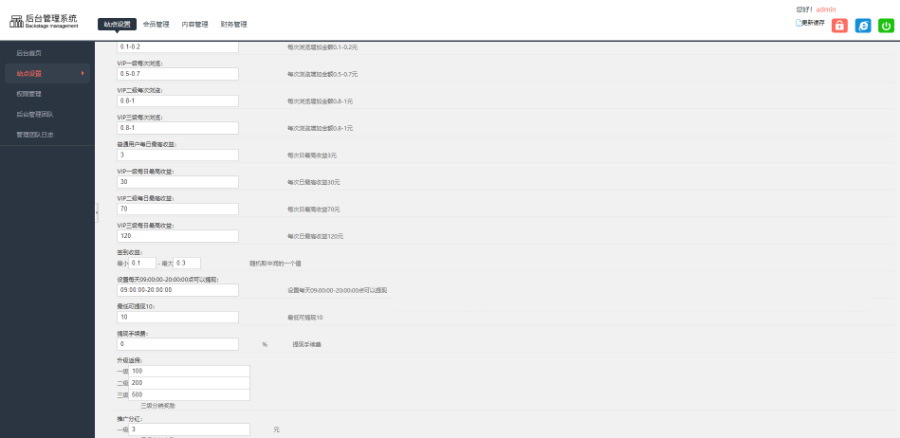 推广分红:一级68% 二级34% 三级17% (金额比例后台可控)
