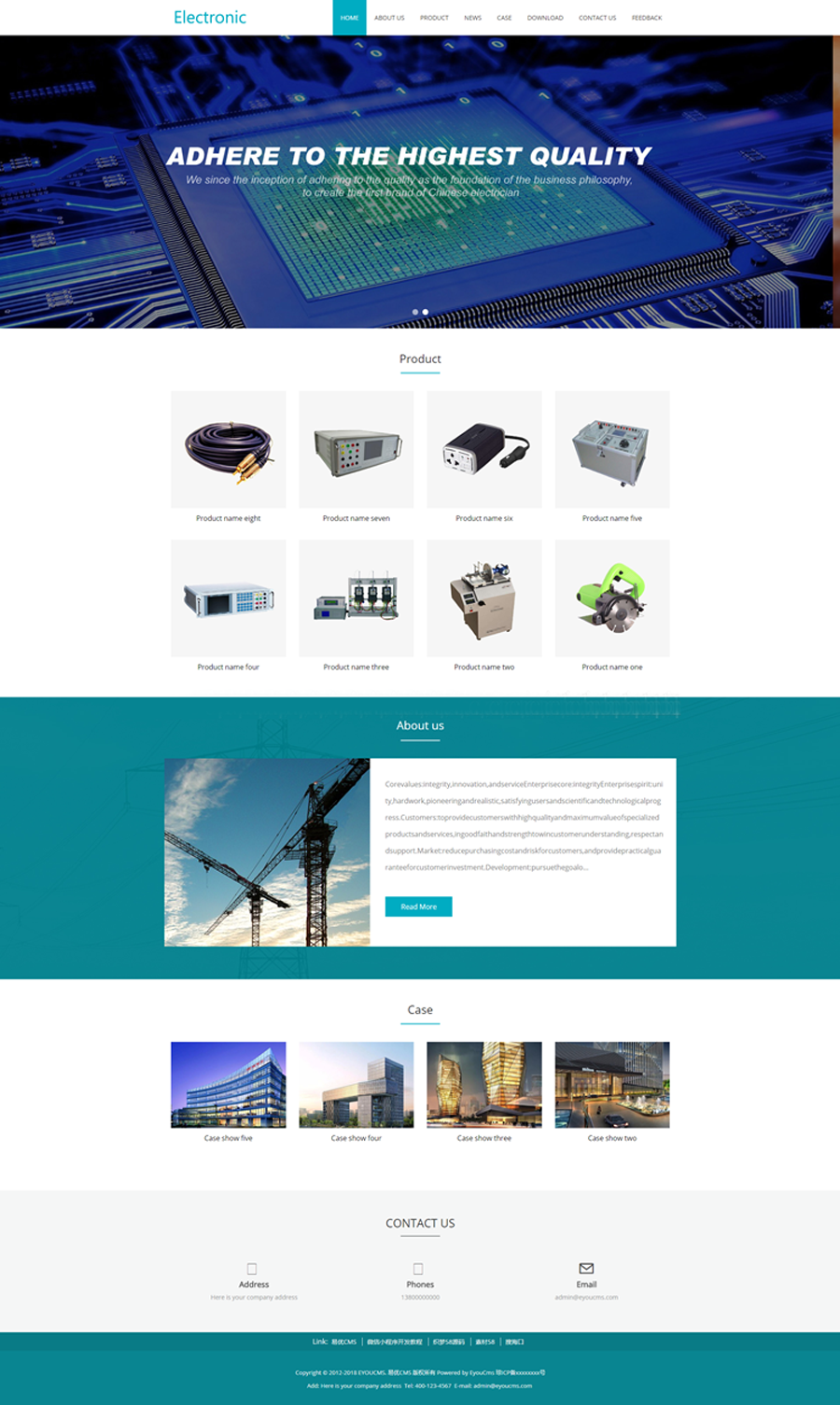 本模板自带eyoucms1.1内核,无需再下载eyou系统,原创设计、手工书写DIV+CSS,完美兼容IE7+、Firefox、Chrome、360浏览器等;主流浏览器;结构容易优化;多终端均可正常预览。
