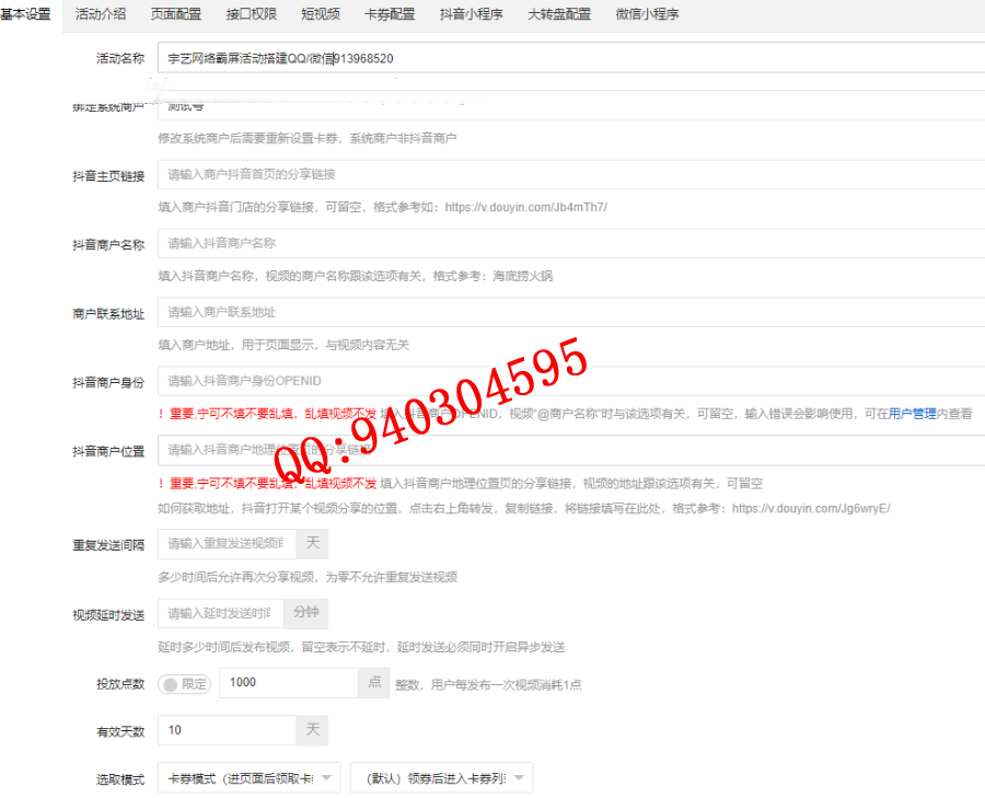 此抖音霸屏活动源码,为在抖音运营宣传推广使用的