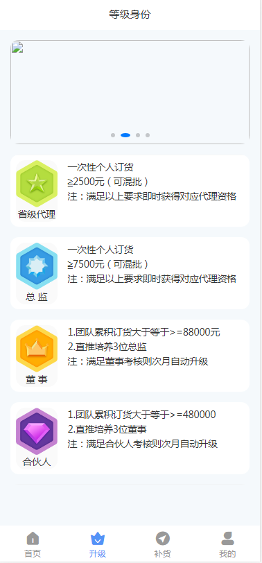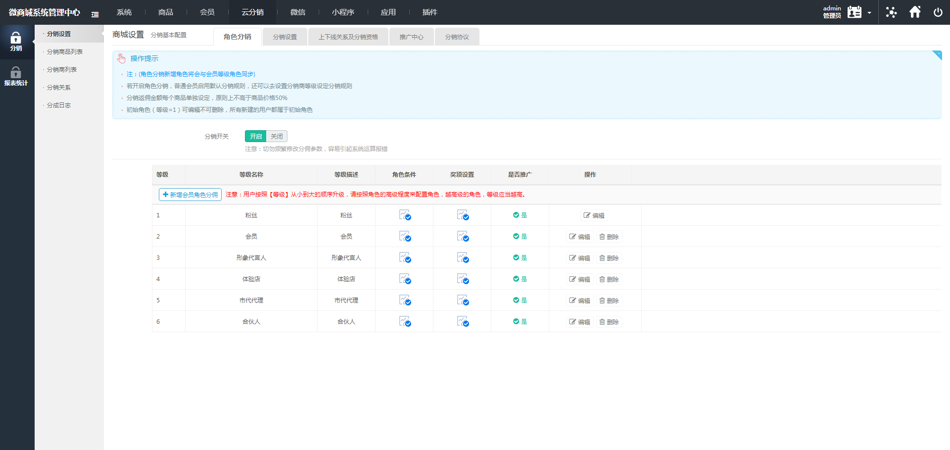 可以自己设置代理等级和升级条件(如购买指定商品、消费额度)。