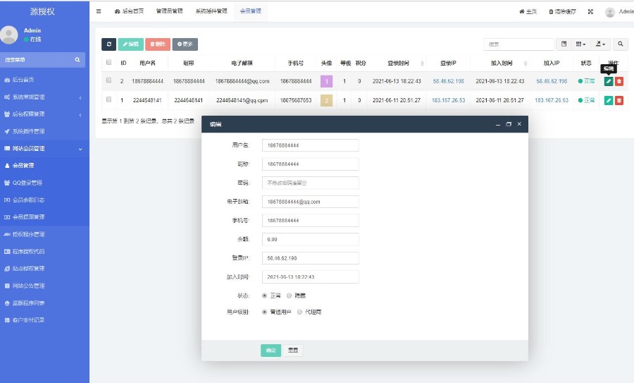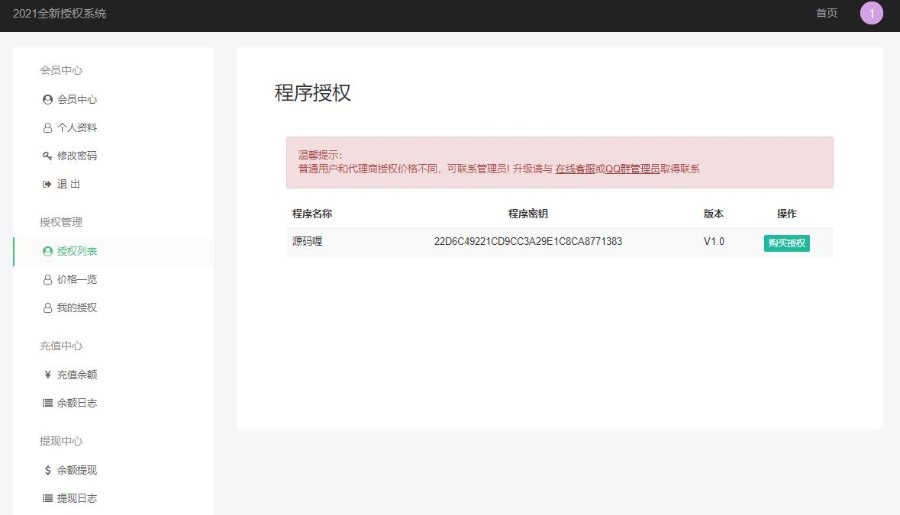 前台支持自助购买和操作管理授权!