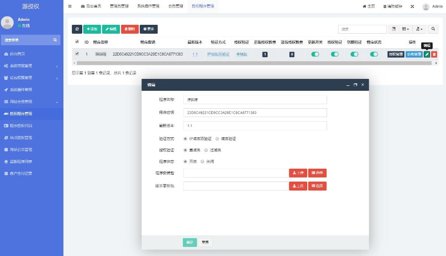 支持多程序在线自助授权