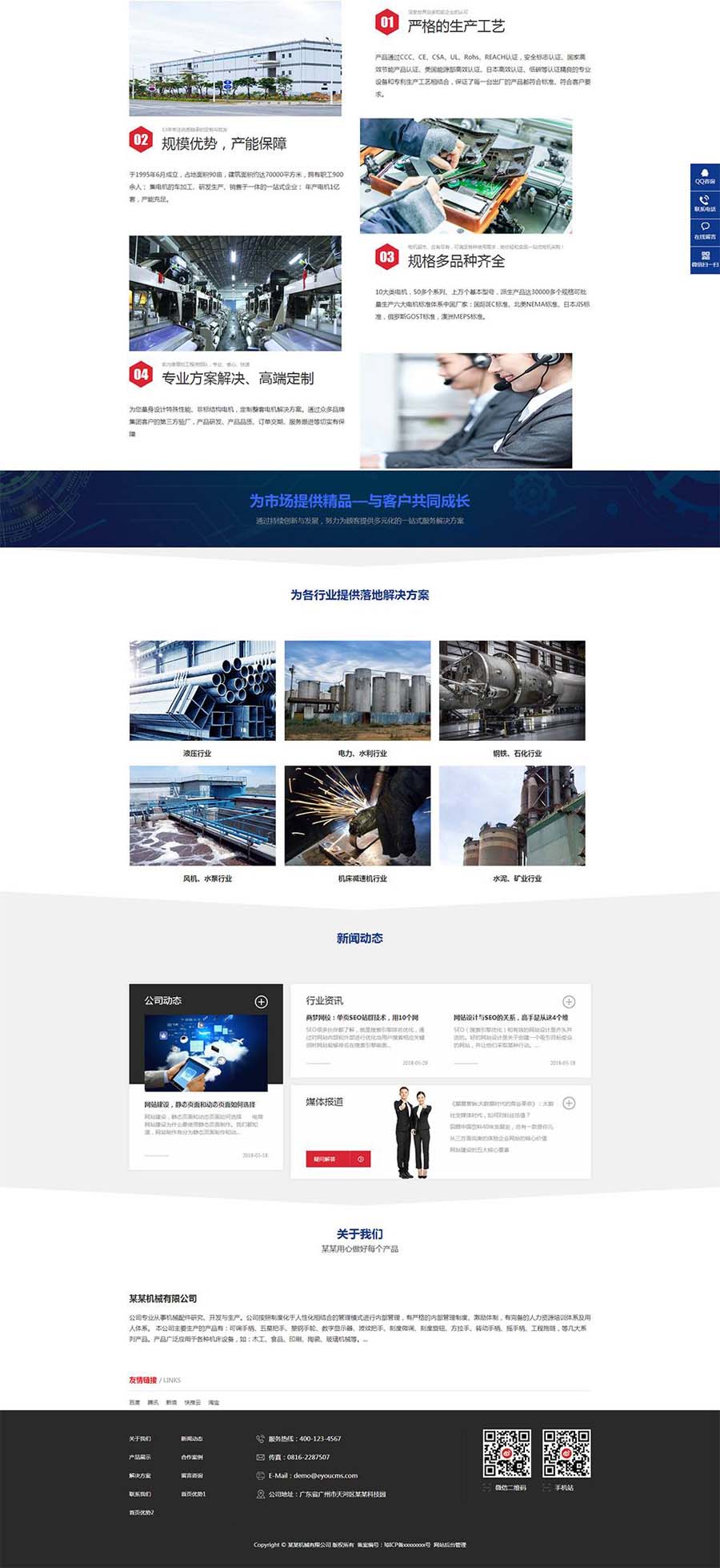 易优eyoucms最新系统开发,eyoucms电动机机械响应式营销型模板,同一个后台,数据即时同步,该模板适用于多个行业,栏目已经添加,您可以添加相关产量和新闻等数据即可上线投入使用!