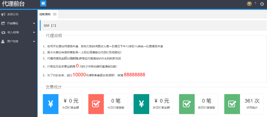 代理前台:http://fk.ym0.top/index.php?id=3(前台不支持电脑直接访问,电脑可以按F12访问,或者直接用手机测试)