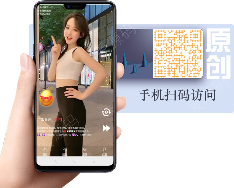 说明:手机向下滑可播放下一个,mv2.txt就是视频数据,可以添加/管理视频连接数据;ewm.png是二维码图片
