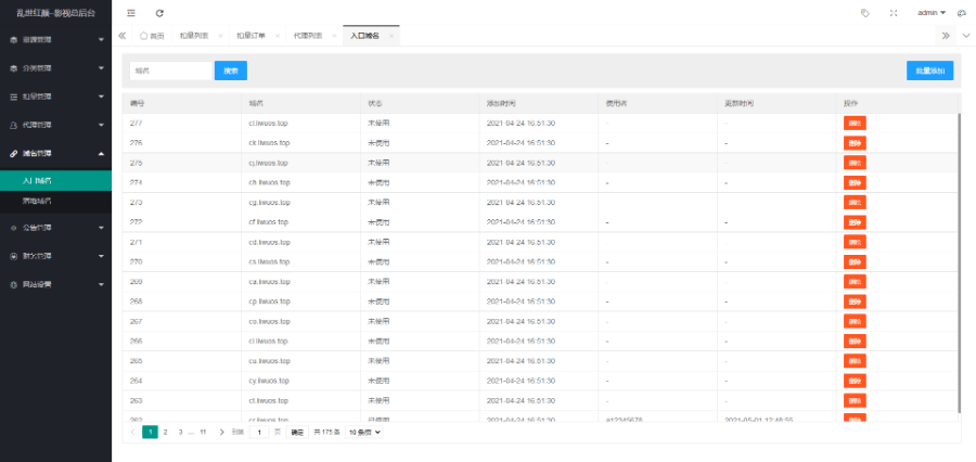 ps:管理后台无法直接导入视频资源,需要在数据库添加!