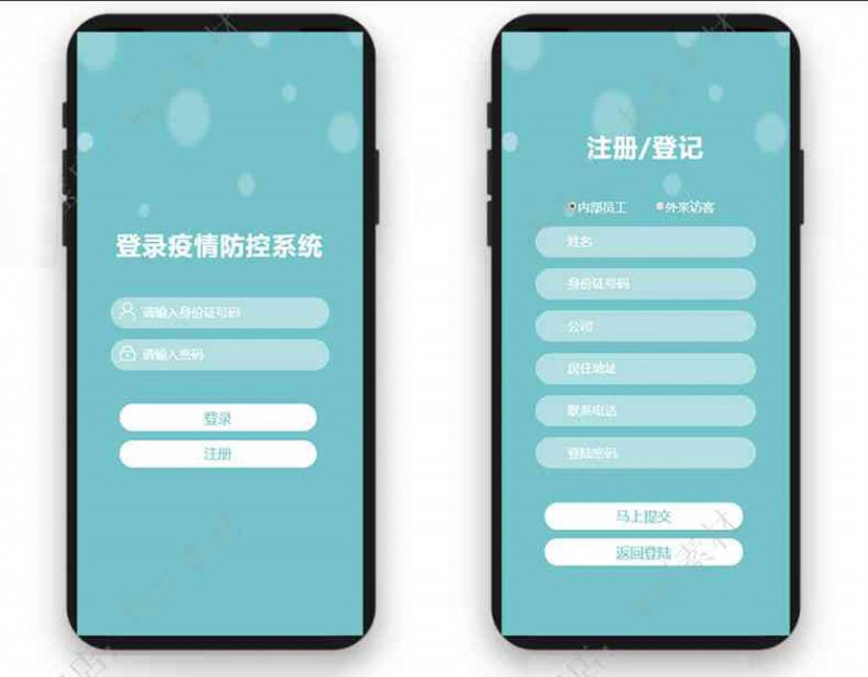疫情H5移动端方便工作人员提高工作效率有访客访问登记、我的资料、我的二维码、疫情上报、公告等常用模块。
