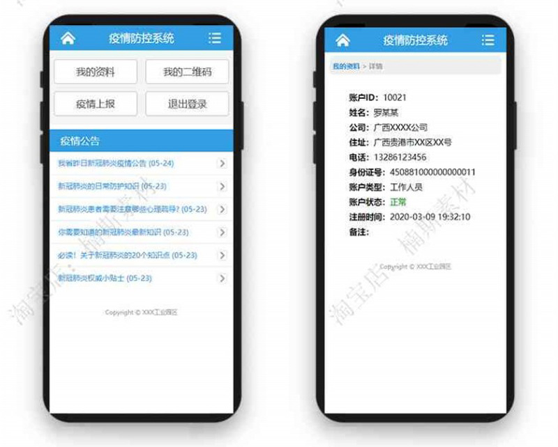 PHP新疫情管理系统后台模块有疫情新闻公告、会员管理、疫情上报记录、管理员维护、权限管理、系统日志等 新冠小区、企业人员登记管理系统。