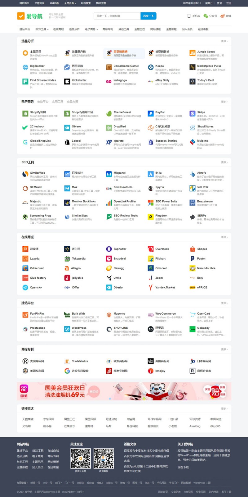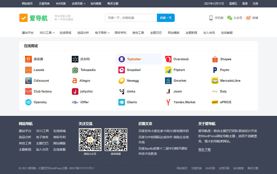 爱导航WordPress主题集成了一键导入演示数据和一键更新的功能,新手操作也会非常简单自适应设计,完美兼容PC电脑、平板电脑、手机访问:
