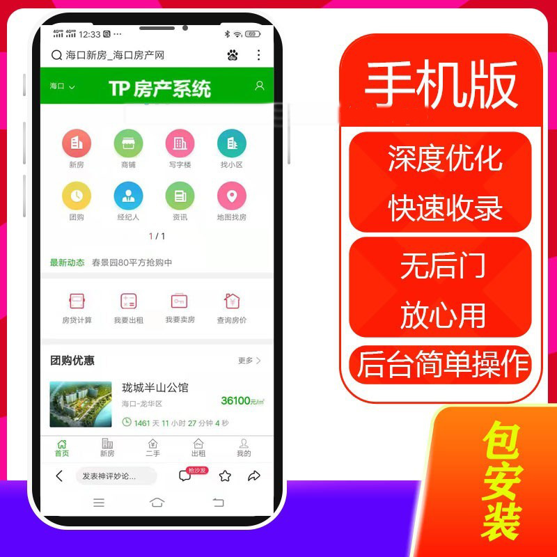 多城市版房产中介销售整站源码thinkphp房屋商铺出租二手出售模板带手机端wap小程序。