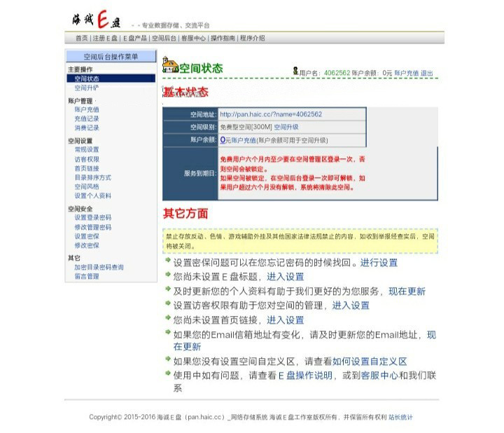 和永硕网盘程序基本相似,多用户,可充值,用户自己充值续费升级等功能