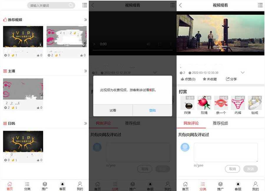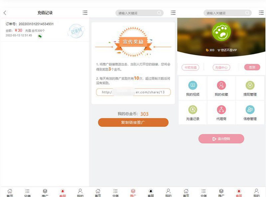 非常完整且专业的一套视频点播系统,带有VIP会员中心和打赏功能,支持卡密充值也支持在线支付,在线支付已经对接了Z支付个人免签和原生支付,可根据需要自己选择。支持云存储,也支持本地存储,当然也可以自己写接口,采集地址都OK。