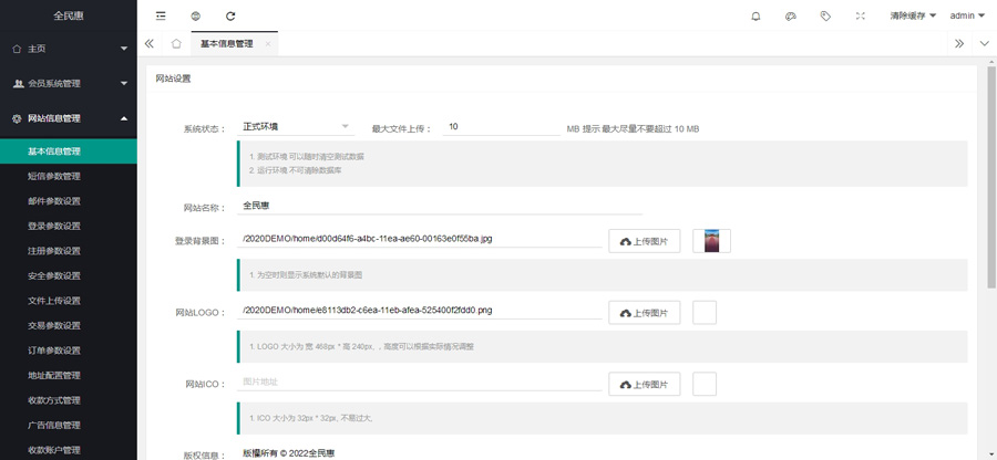 演示后台:点击查看 账号密码:admin,123456
