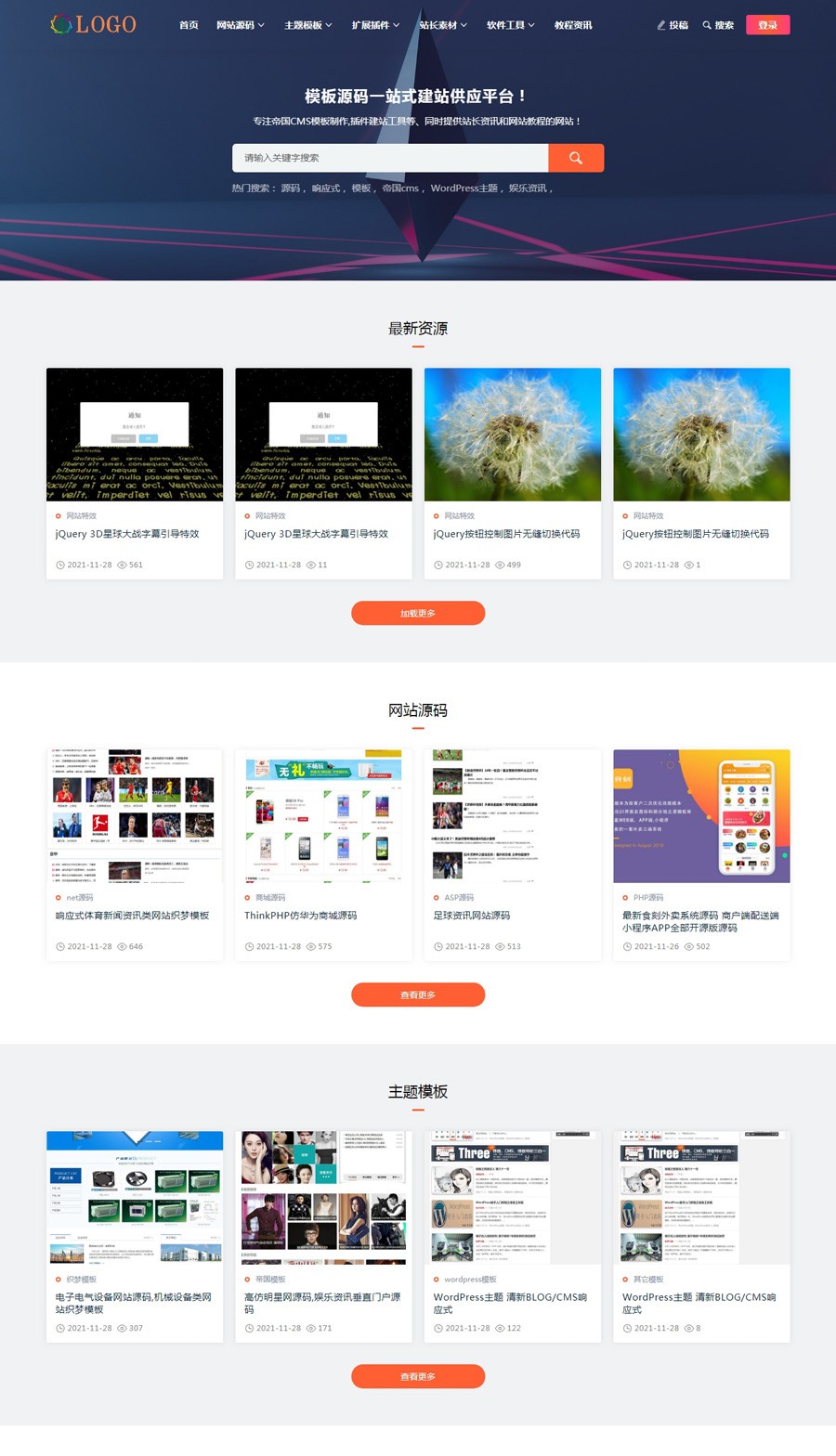 帝国cms7.5内核源码下载站.自适应源码资源网站博客素材站模板+自适应会员中心