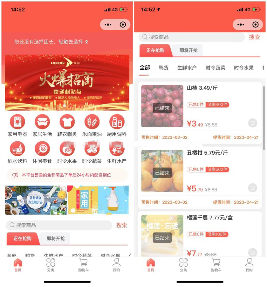 开源多城市社区团购微信小程序DIY商城团长拼团群接龙秒杀礼品卡