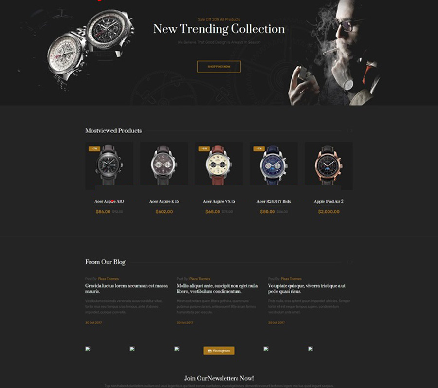 基于PHP开发的一款黑色炫酷的男士手表在线购物外贸商城网站源码,是一款通用的手表商城建站模板,程序带数据,帮助站长快速建造一个属于自己的外贸商城网站。