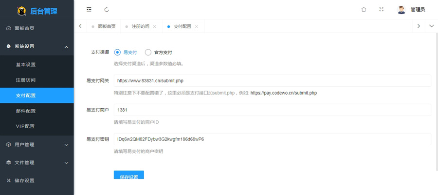 注意: 支付接口为支付宝官方老版接口(非公钥私钥类别接口),新申请支付宝商户无法使用此接口。