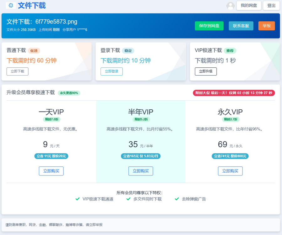 闪客网盘系统源码支持限速+按时收费+文件分享+可对接易支付