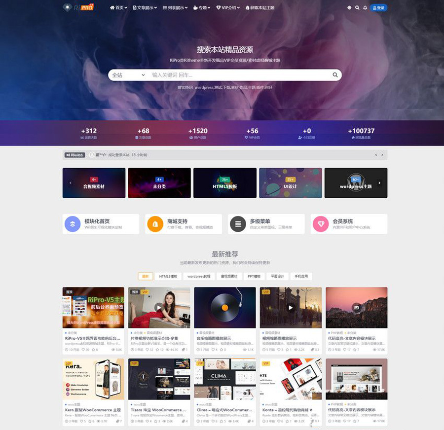 最新RiPro-V5主题V7.71开心版,已解除学习版+开心教程。RiPro主题全新V5版本,是一个优秀且功能强大、易于管理、现代化的WordPress虚拟资源商城主题。支持首页模块化布局和WP原生小工具模块化首页可拖拽设置,让您的网站设计体验更加舒适。同时支持了高级筛选、自带会员生态系统、超全支付接口等众多功能,无需依赖插件即可实现。此外,主题还支持卡密、充值、站内币、会员、推广佣金、统计、自定义币种、自定义会员标识、支持自定义SEO信息等多种功能,为您的网站提供更加完整的解决方案。