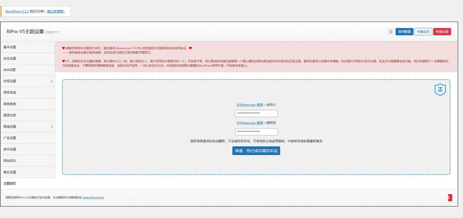 2、下载激活文件ripro-v5-active.php上传到wp根目录,访问一次,即可激活。