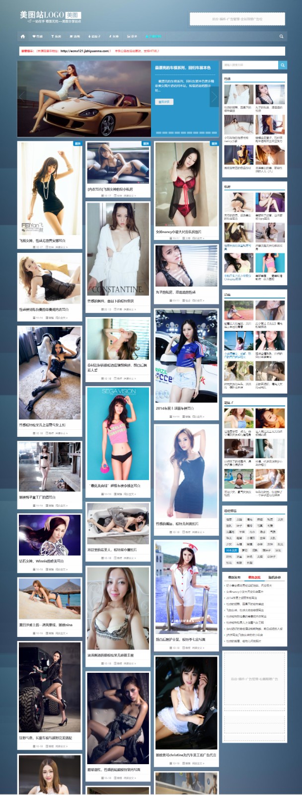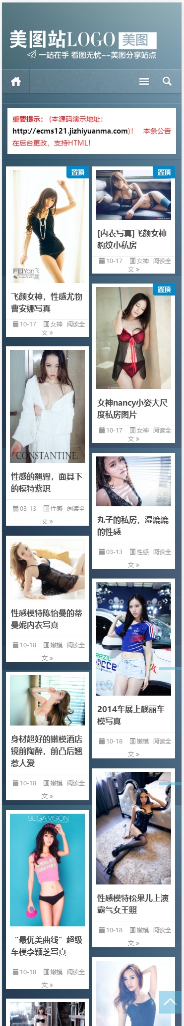 本图片站模板是帝国cms7.5自适应手机移动设备了。效果还不错!可以用在图片展示,美女图片等站点,自带部分资源,后台添加图片也非常方便。自带广告位管理!帝国CMS后台,安全稳定,无漏洞!到手即可开站!