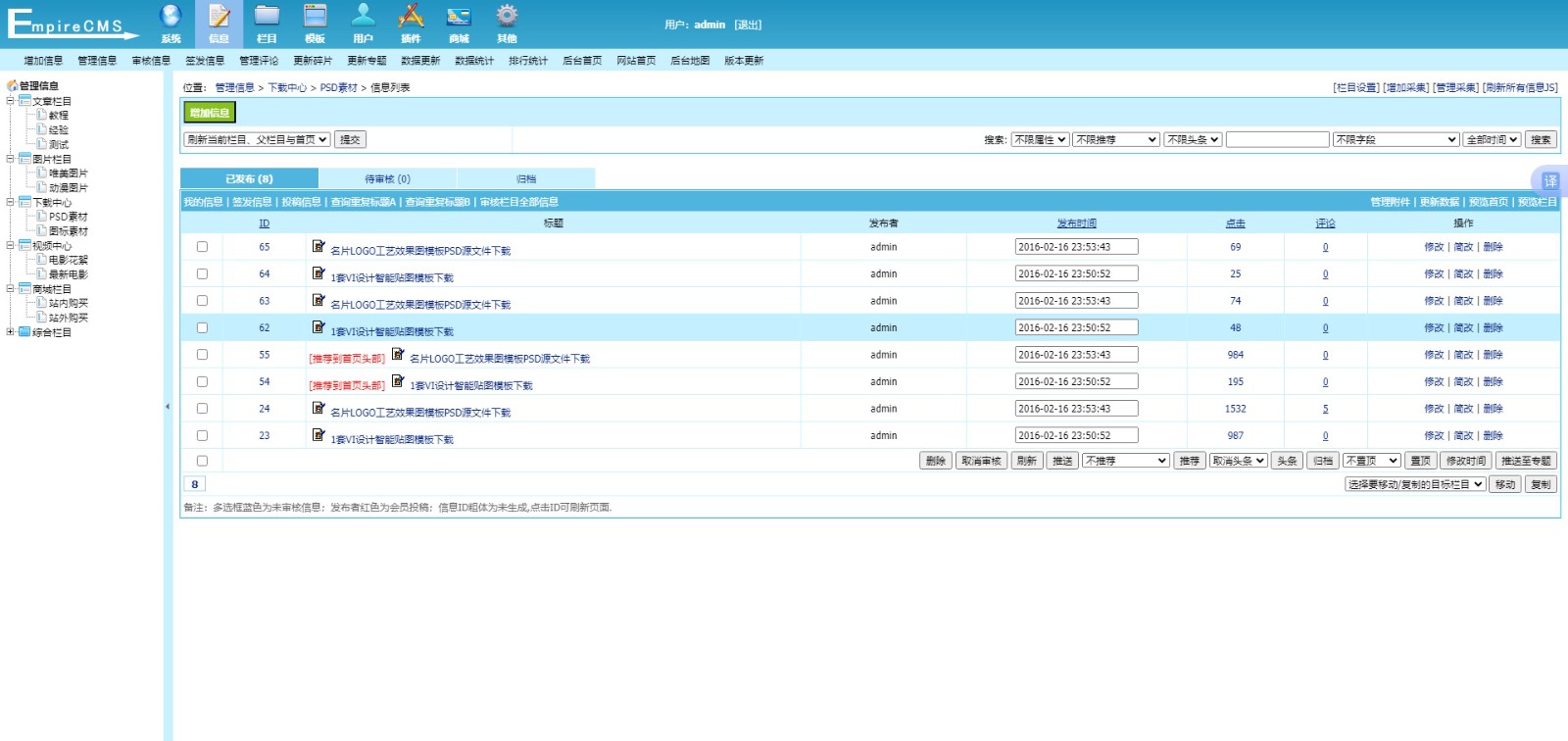 帝国CMS7.5核心制作,可以用于新闻文章展示,图片展示,文件资源等下载(可以后台设置下载点数和下载用户权限)