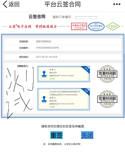 8、增加客户借款云签系统;使运营方可以放心放款;该云签系统为程序自带,不通过第三方平台,为运营节省很大成本;